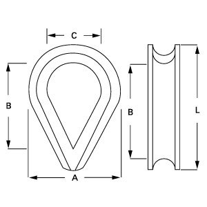 | Rope Dia Inches | L mm | A mm | B mm | C mm | Weight Kgs/100 | Part Code |