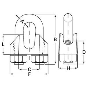 | Dia. mm | A mm | B mm | C mm | D mm | F mm | H mm | L mm | Weight Kgs/100 | Part Code |
