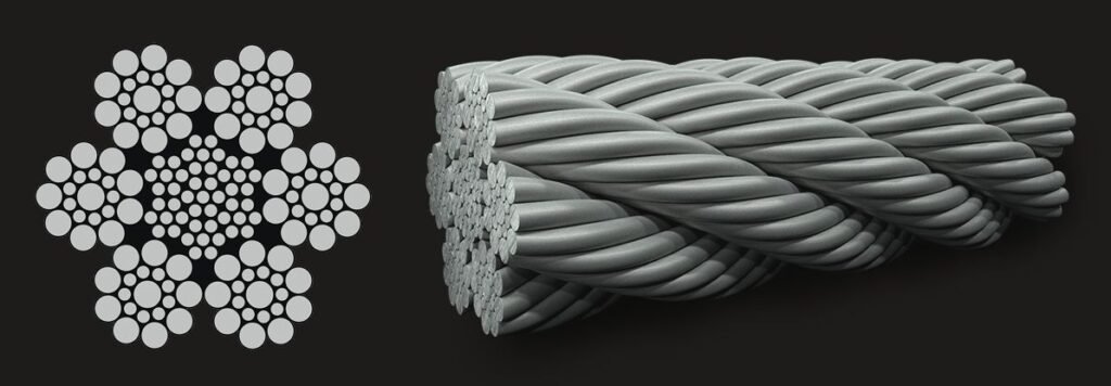 6×19 Seale construction is a wire rope construction with superb breaking load characteristics and is used in a wide range of applications, available with both FC (fibre core) and IWRC (independent wire rope core). The construction has proved particularly popular for applications where the additional resistance to wear and abrasion provided by the larger outer wires is superior to the other 6×19 constructions.